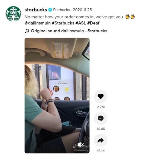 Starbucks показывает обслуживание клиентов и доступность заказа для глухих: