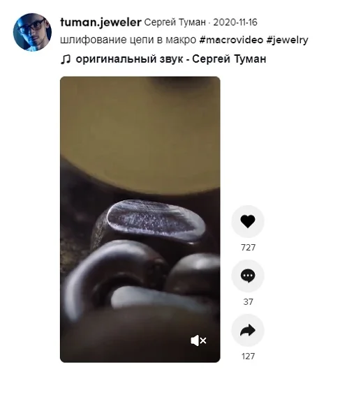 - Медитативные видео. В них показывают взаимодействие с предметами в деталях. Это может быть и процесс производства, но с фокусом на качественной макросъемке деталей и механической обработки изделий под расслабляющую музыку. Или это может быть ASMR, если фокус на звуках. С помощью таких видео вы можете повысить узнаваемость бренда, если постоянно ненавязчиво располагать фирменную атрибутику в кадре.