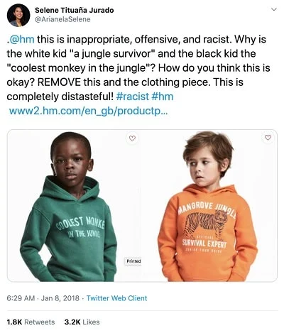 В начале этого года много шума наделала реклама новой детской коллекции H&M. Решение надеть на чернокожего мальчика-модель худи с надписью “обезьяна” сочли расистским. И хотя скандал привлек внимание к новой коллекции он имел настолько негативный резонанс, что в итоге худи убрали из продажи. Этот пример показывает, что в рекламной кампании важной может быть любая мелочь.