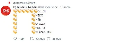 Именно с Красного и Белого в Твиттере началась волна расслабленного и близкого общения брендов и пользователей вместе с годными вирусными шутками. Кстати, SMM-щики аккаунта утверждают, что за все время продвижения они потратили всего несколько тысяч рублей и пару бутылок вина – на призы для розыгрышей. Отличная ведь тенденция, учитесь!