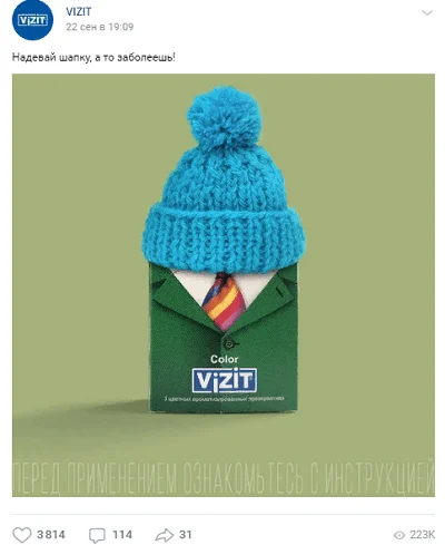 Бренд презервативов VIZIT активно используют провокации и шутки “на грани” при разработке вирусных постов. Так или иначе, такой агрессивный подход работает, и за последние несколько месяцев фирменные шутки бренда активно распространяются по ВКонтакте.