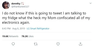 Хотя LG не задумывало это как кампанию по рекламе умных холодильников, они умело воспользовались твитом подростка. Мать наказала ребенка и забрала все гаджеты. Историю раздули, более того, в поддержку девочки выступили Твиттер и LG, запустив хештег #FreeDorothy.