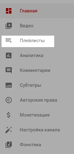Зайдите «Творческую студию YouTube» и выберите вкладку «Плейлисты».