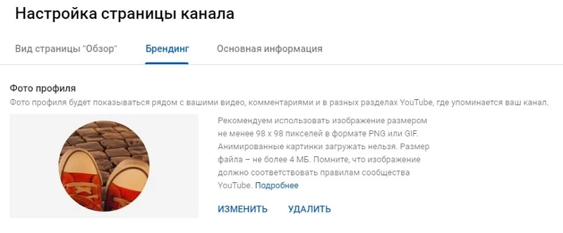 - Вкладка «Брендинг», изменить фото профиля.