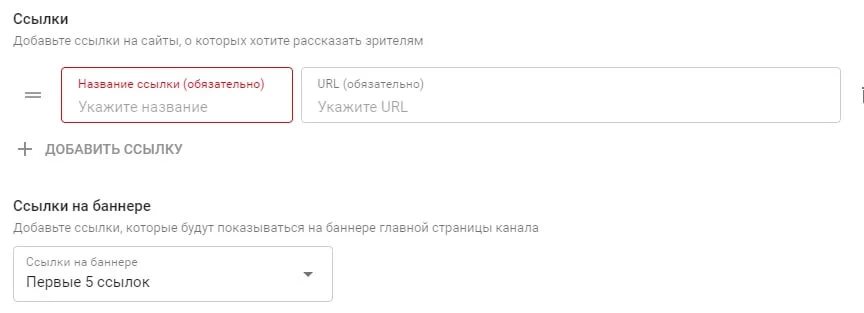 Как добавить ссылки на обложку канала?