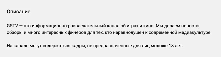 - Отталкивайтесь при написании от видеоформата и тематики. Если вы позиционируете себя как блогер, то опишите, чем занимаетесь, кто вы такой и какие видеоролики снимаете. Если создаёте канал от лица бренда или компании, то лучше описать, что производите или какие услуги предлагаете.