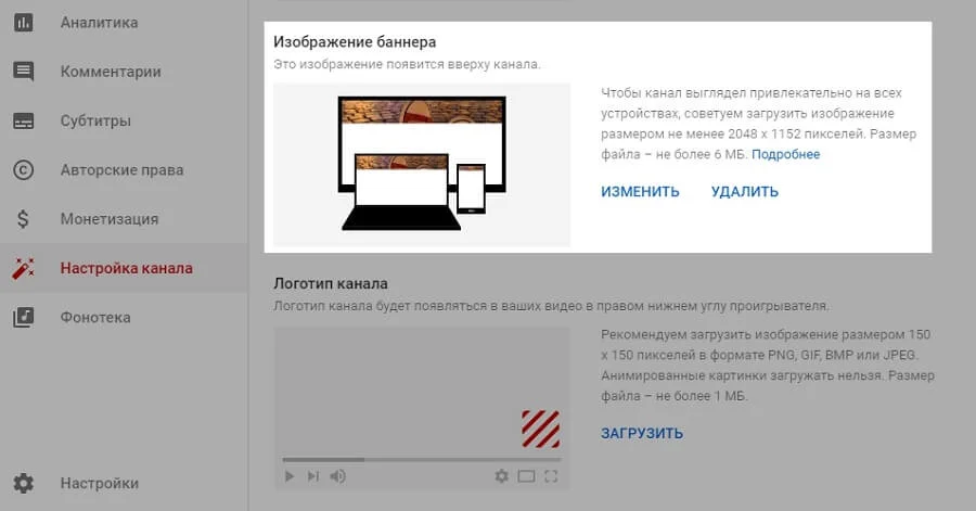 Как загрузить обложку канала?
