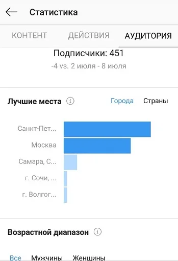 Одно из главных преимуществ бизнес-аккаунта для владельцев компании. Во встроенной аналитике Инстаграм дает информацию об охвате, показах, вовлечении в публикации, демографических данных (пол, возраст, страна, город, а также время в сети) и отмечает лучшие публикации (те, которые вызвали наибольший интерес у пользователей).