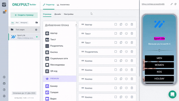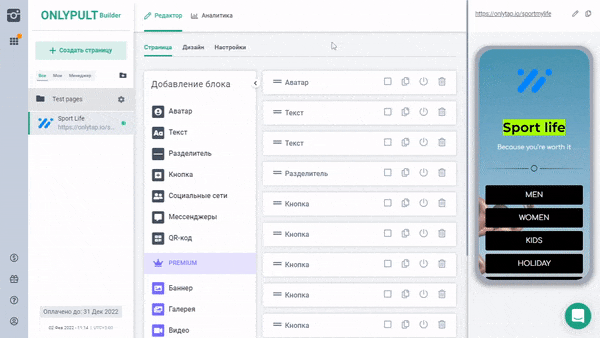 Мы переработали элементы на правой панели вкладки “Редактор” и логику сохранения изменений вашей страницы. Теперь все ваши действия сохраняются автоматически и сразу видны на предпросмотре: