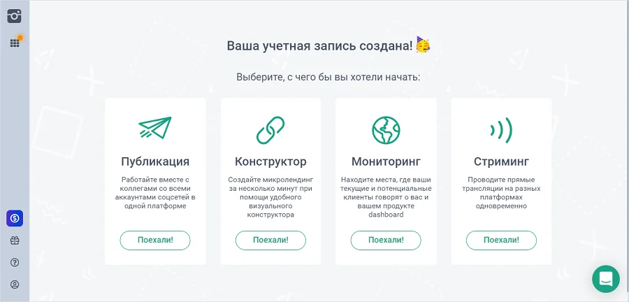 Наши новые пользователи после регистрации будут попадать на страницу приветствия, где им будет проще сориентироваться и выбрать нужный продукт: