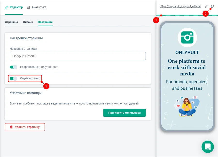- Тумблер публикации страницы 3 перенесен на вкладку “Настройки”