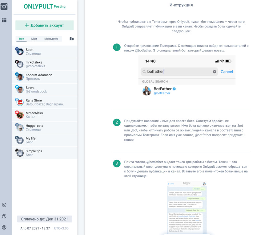 - Если вы не знаете, где взять токен и ссылку, ниже есть подробная инструкция по добавлению канала.