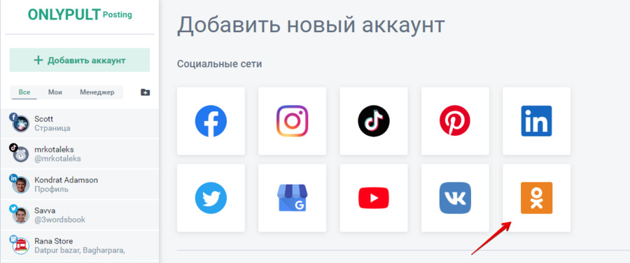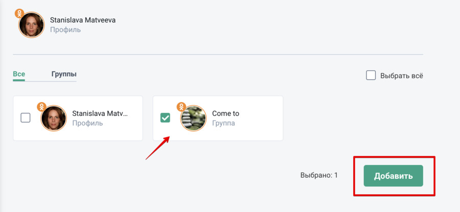 - Выберите нужные страницы или профиль и нажмите “Добавить”.