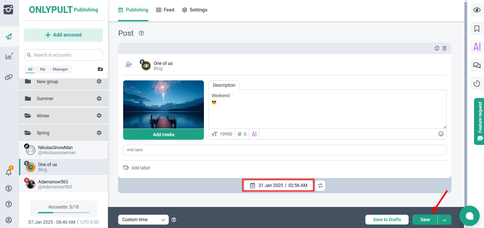 - Выберите дату и время, а затем нажмите на кнопку «Сохранить».