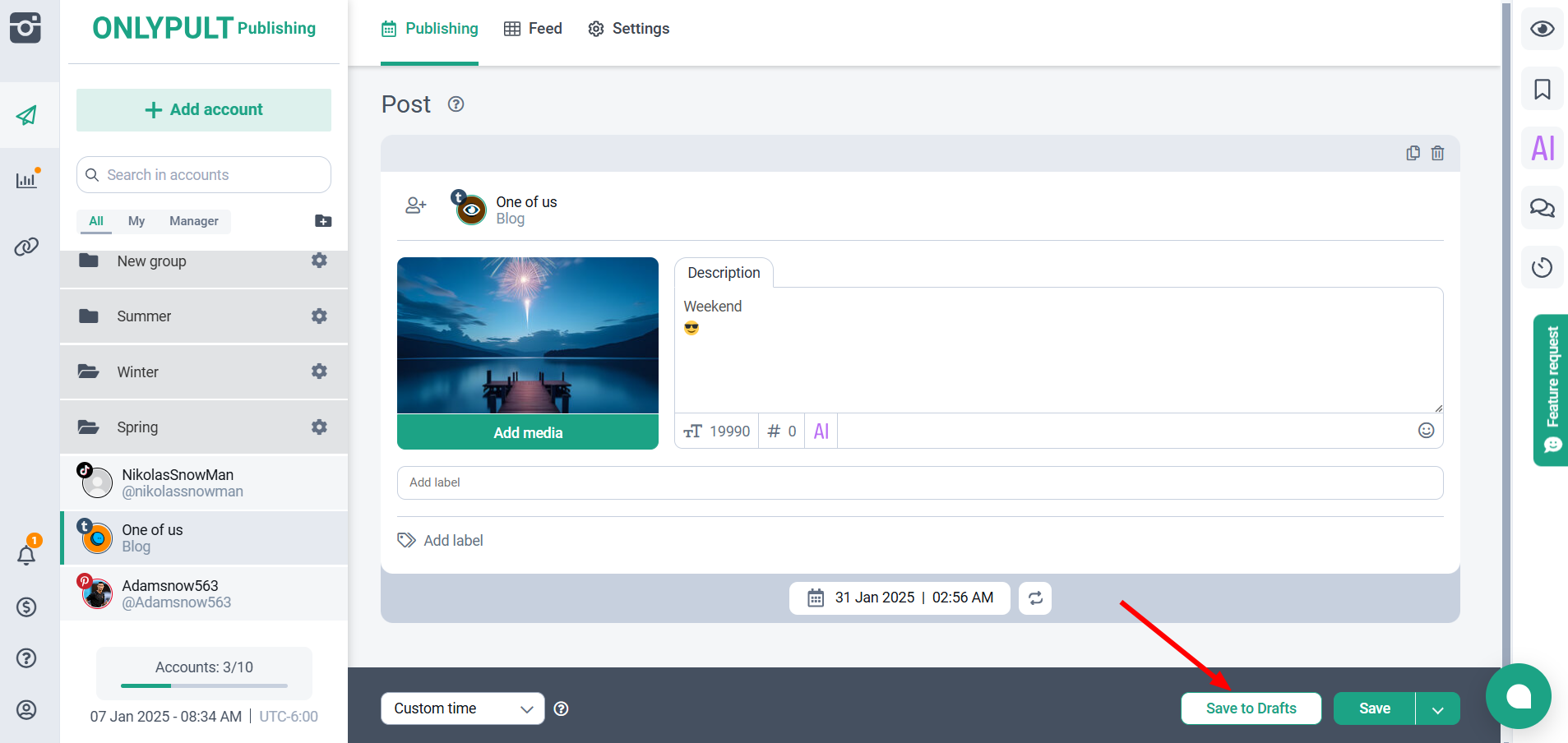 Иногда после планирования публикации вы можете прийти к выводу, что она требует доработки или не подходит для текущего момента. Вместо того чтобы удалять её, вы можете сохранить её как черновик для будущего использования.