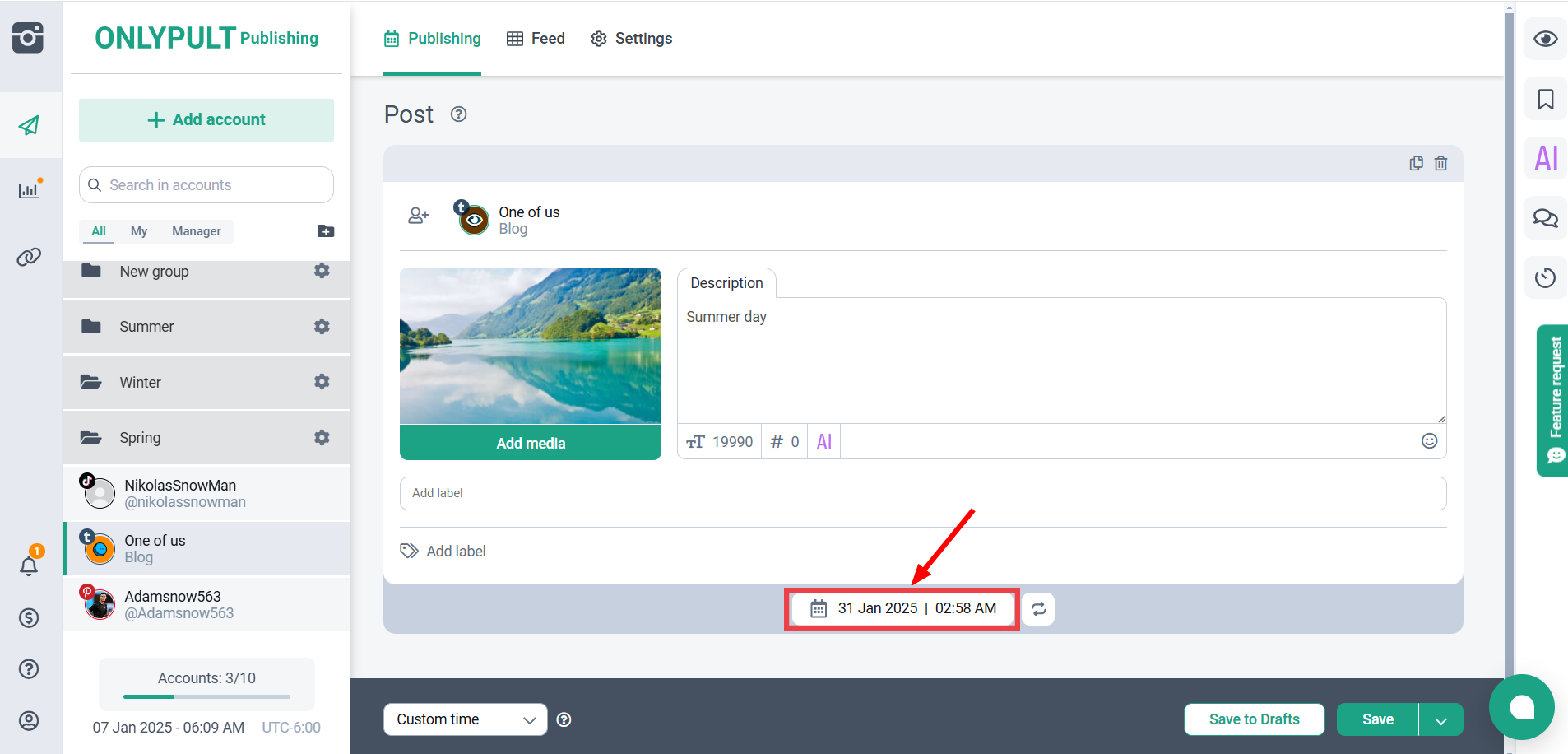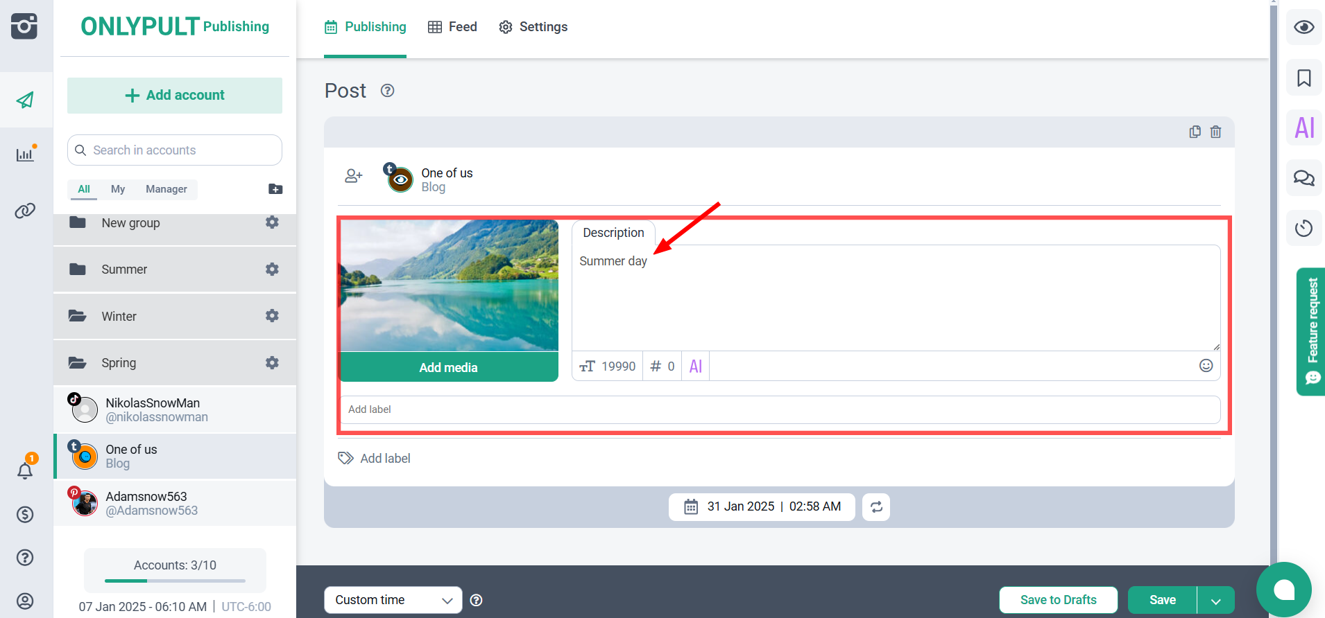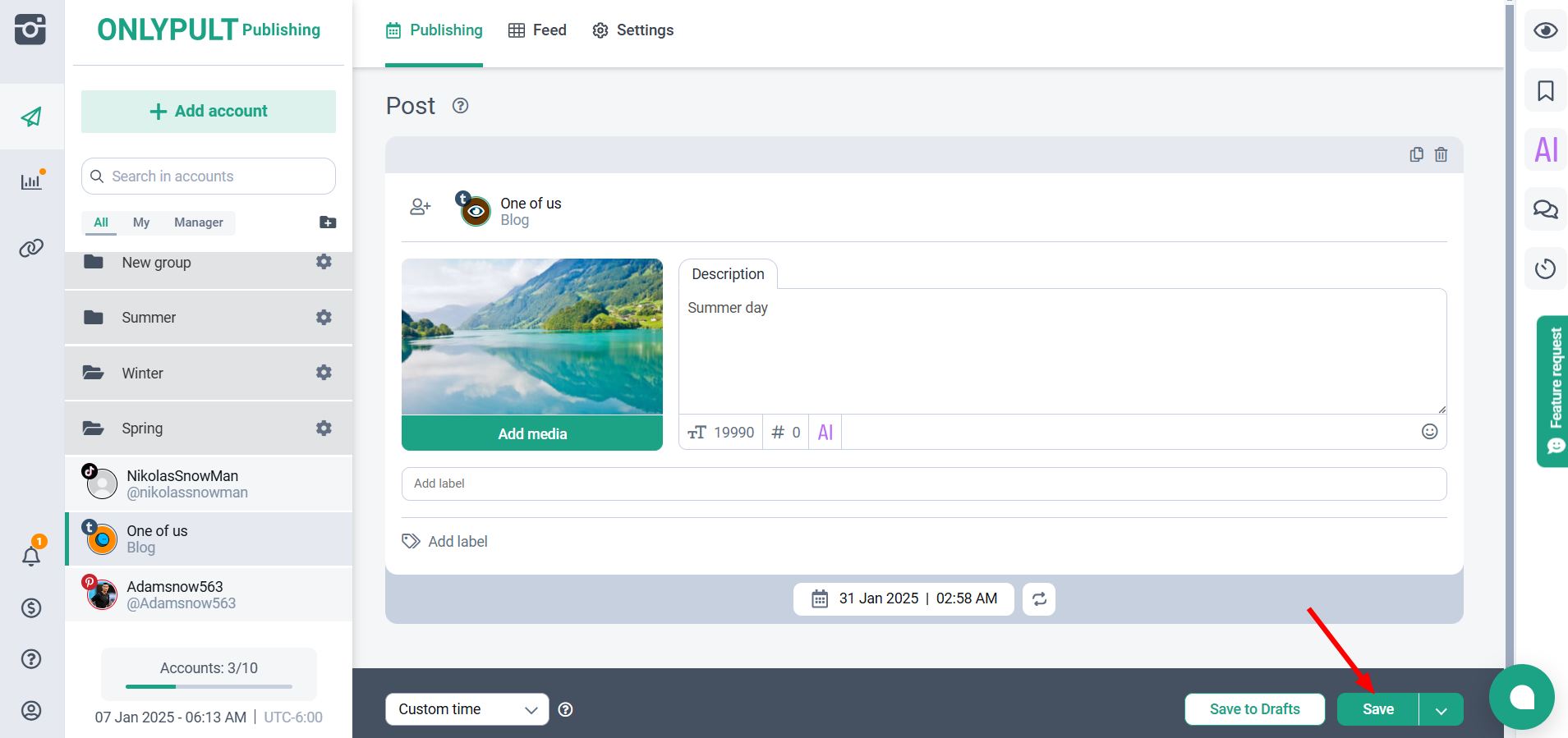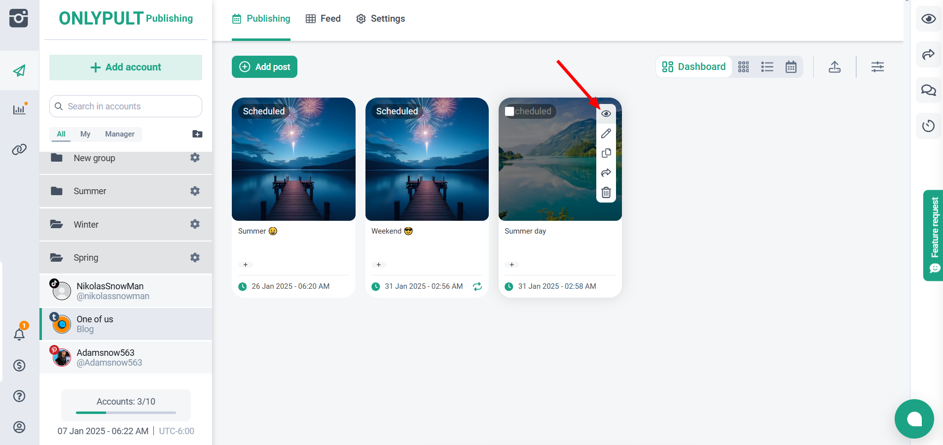 - Для удобства вы можете фильтровать публикации по социальным аккаунтам или меткам.