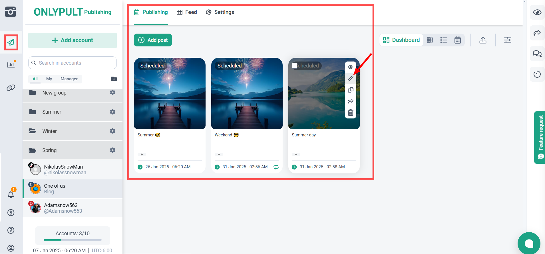 - Если вам нужно изменить контент, нажмите значок редактирования в правом углу публикации.