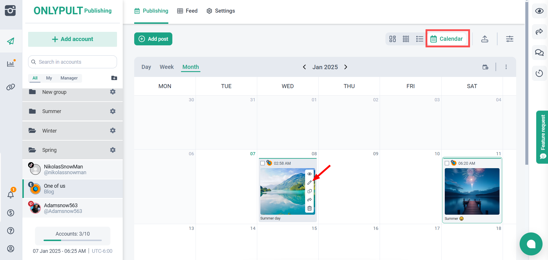 - Вы также можете редактировать публикации прямо в разделе «Сетка», «Список» и «Календарь».