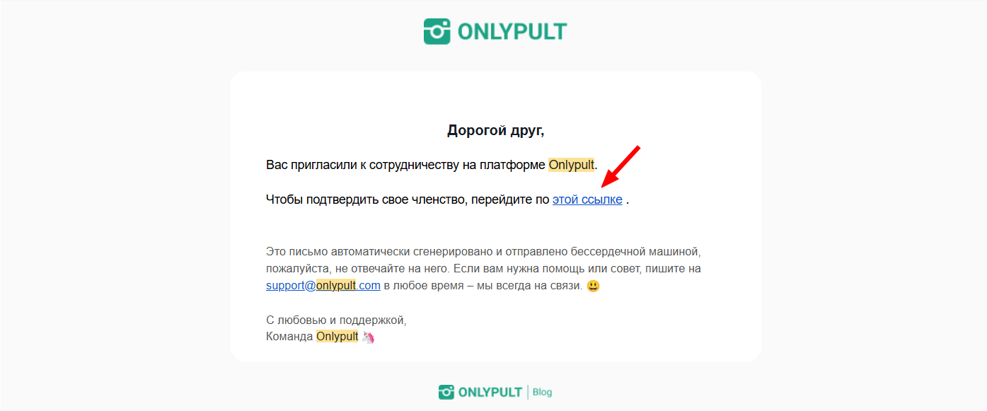Для активации аккаунта участник должен перейти по ссылке в письме или просто зайти на сайт со своим логином и паролем: